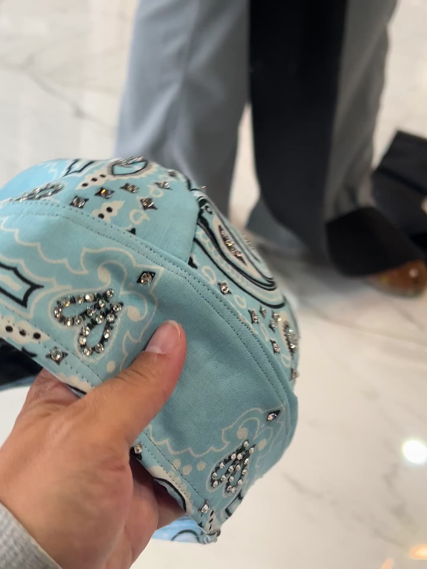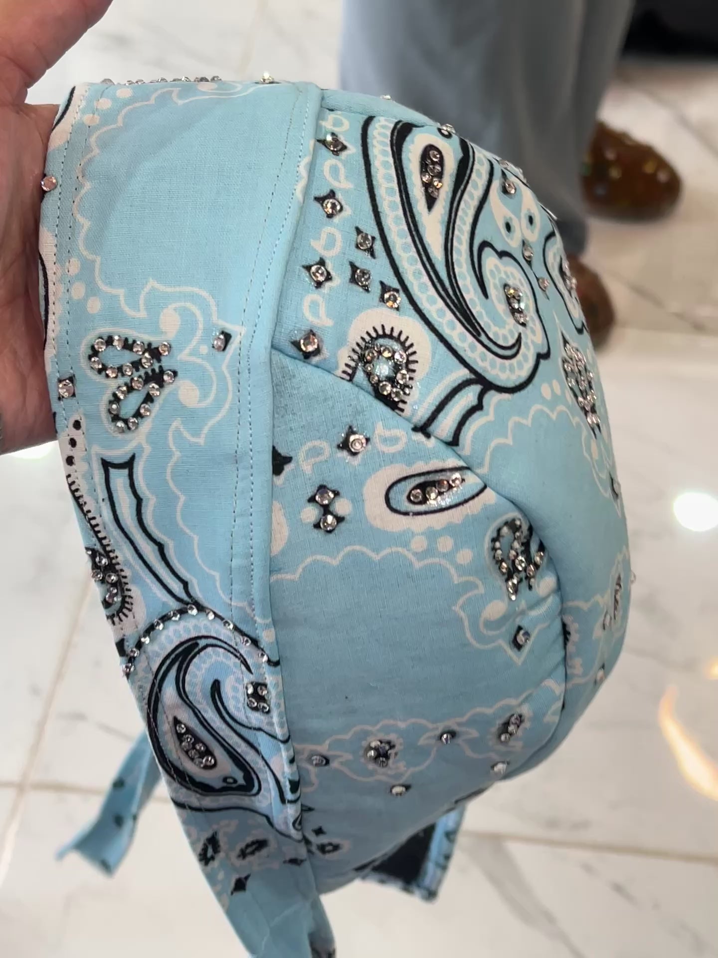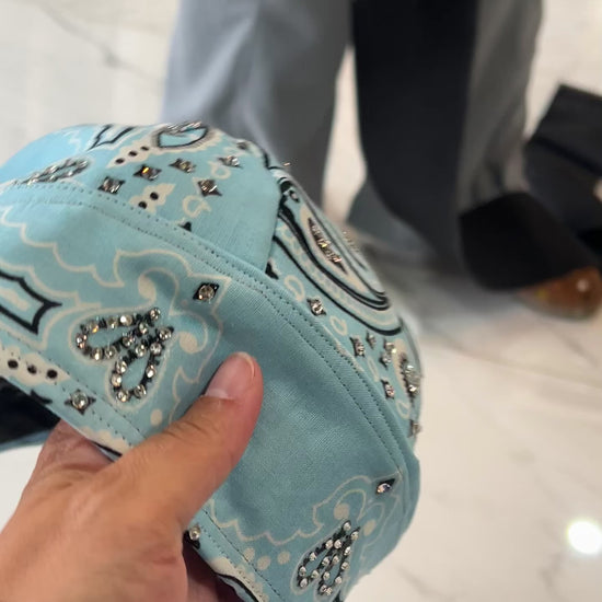 Tan vintage graphic biker cap. Extra gems. Color placement may vary slightly. Silver studs.