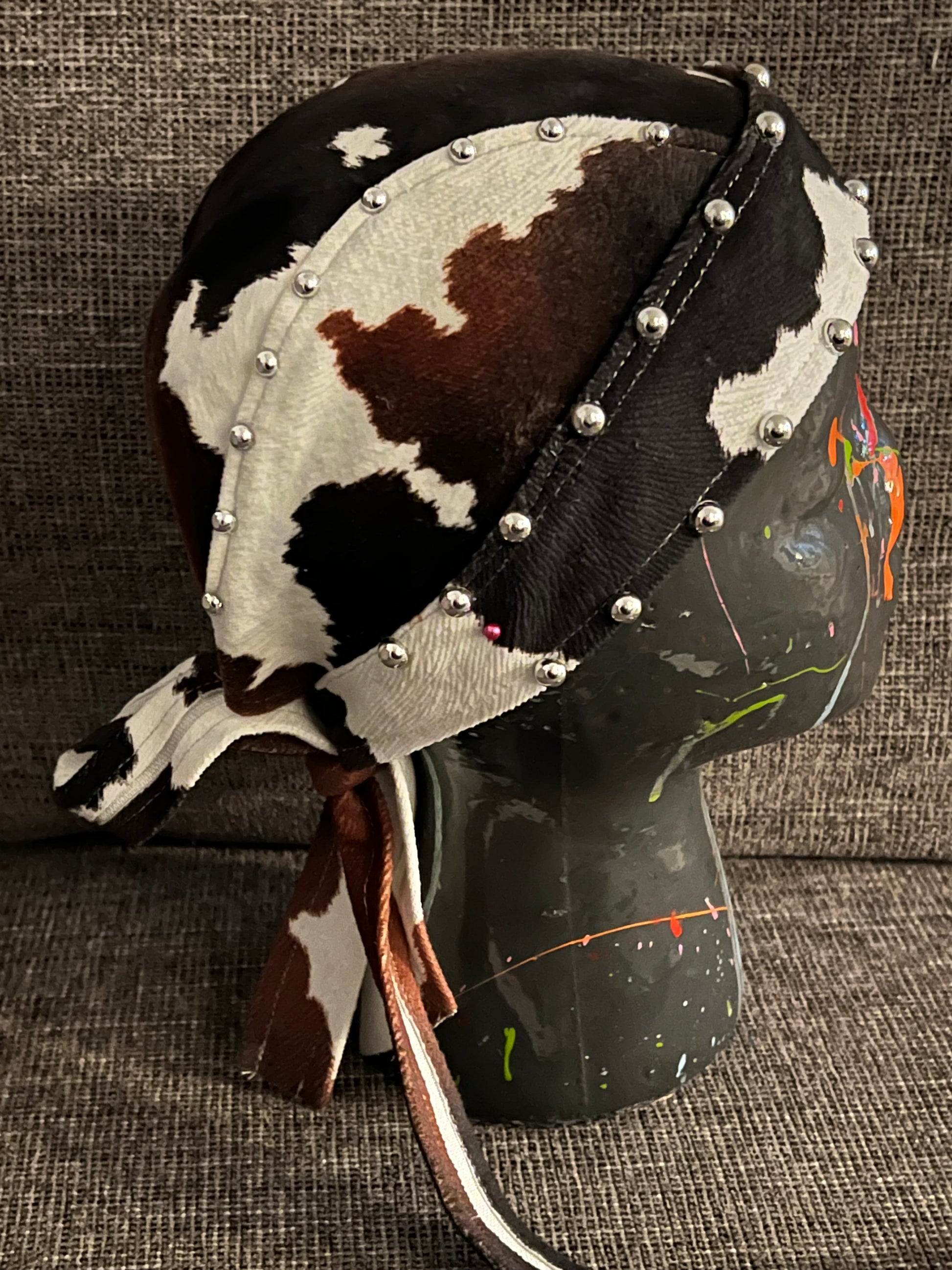 Faux cow hide studded biker cap